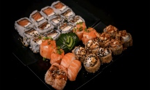 - COMBINADO 28 PEÇAS: 4 uramakis filadélfia; 8 uramakis skin; 4 hots, salmão, arroz, cream cheese, teriyaki e gergelim; 4 hots, salmão, arroz, cream cheese, cebola crispy e teriyaki; 4 joys; 2 niguiris puros; e 2 niguriris maçaricados com teriaki e gergelim.