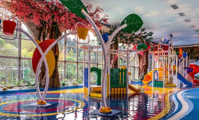 - ➡️ Piscinas infantis com cenários mágicos para os pequenos.