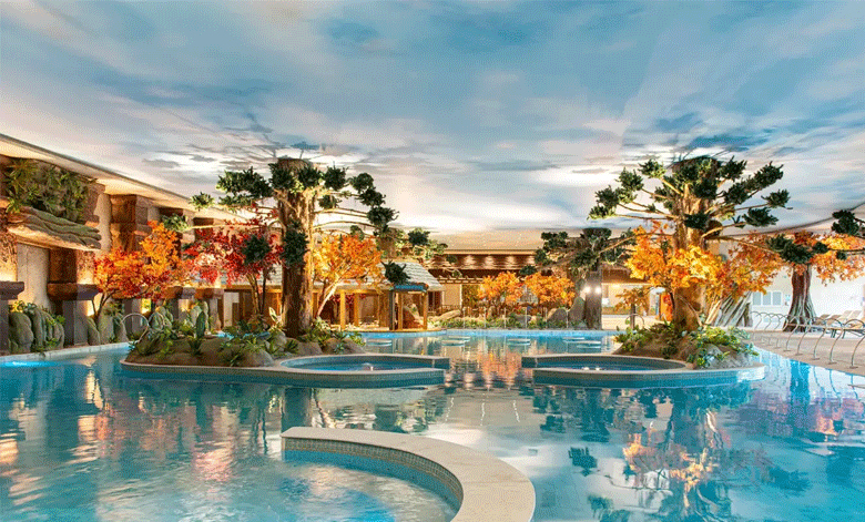 - Piscinas internas e externas com águas termais da “Nascente das Águas Mágicas”.