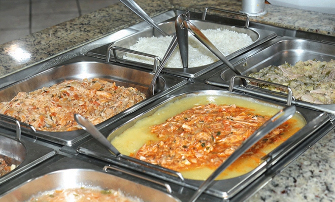 - O cardápio reserva experiências únicas, com um menu diferenciado, desde de buffet livre a pratos quentes, sopas, carnes grelhadas, filé de tilápia, saladas e deliciosas sobremesas.