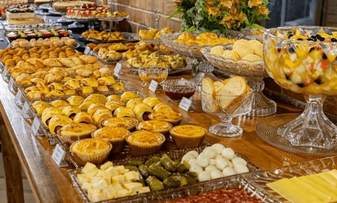 - OFERTA INCLUI: café colonial com mais de 55 opções entre salgados, doces, bolos, pães e bebidas para 1 pessoa.