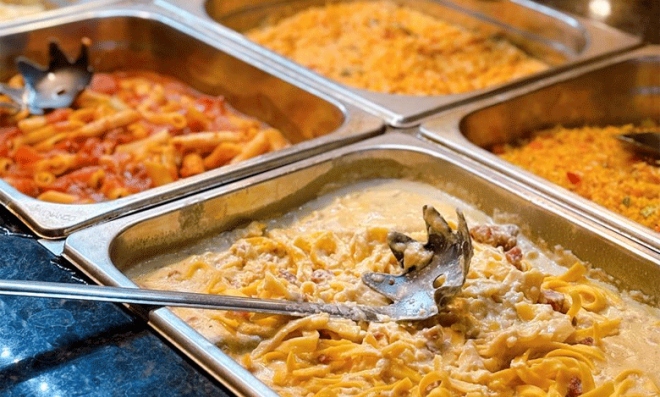 - OFERTA INCLUI: 1 almoço buffet livre com saladas, frios, massas, carnes, pratos quentes, pratos vegetarianos e sobremesas. (Conforme opção de compra).