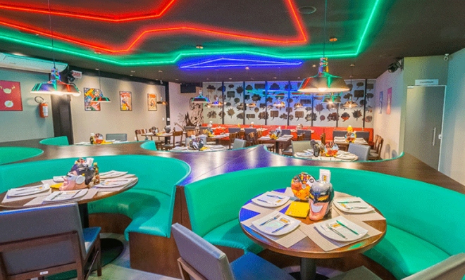 - Tudo servido em um ambiente cheio de interatividade, onde cada mesa faz parte da história dos heróis da Liga Galáctica.