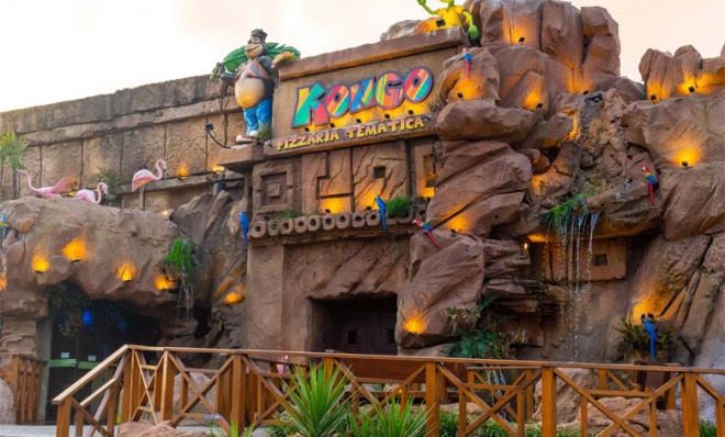 - Desfrute de uma noite incrível na selva com a Kongo Pizzaria. Com um ambiente temático de selva e personagens animados.