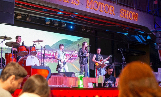 - Ambiente inspirado nos bares rock'n'roll americanos.