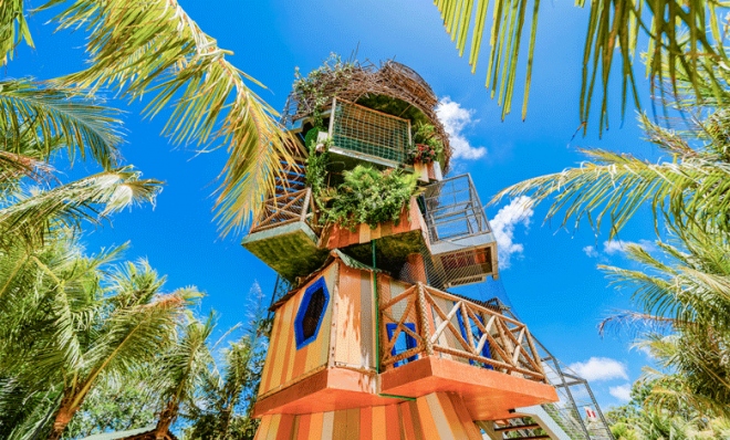 - Casa dos Passarim: Com quatro andares, a Casa dos Passarim oferece a oportunidade de realizar o sonho de viver em uma casa na árvore. Cada nível revela de forma lúdica curiosidades sobre a rotina das aves. No topo da torre, os visitantes podem apreciar uma vista panorâmica de 360 graus do parque e de seus arredores.