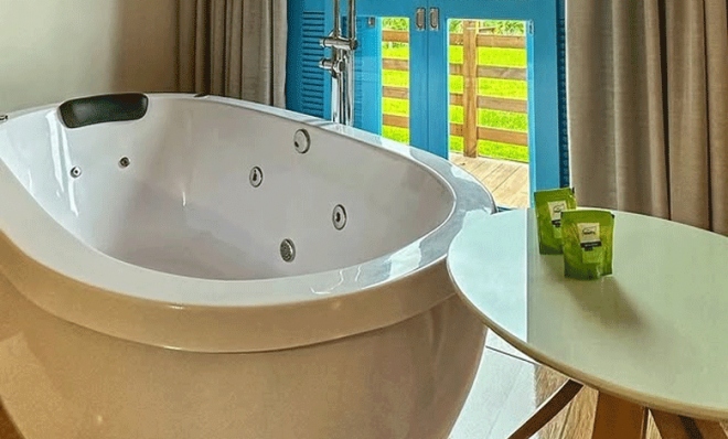 - Suíte Luxo: Surpreenda quem você ama com essa suíte encantadora! A suíte conta com cama queen-size, cozinha equipada, wifi, ar condicionado, TV, banheiro privativo, banheira de hidromassagem, secador de cabelo e varanda privativa.