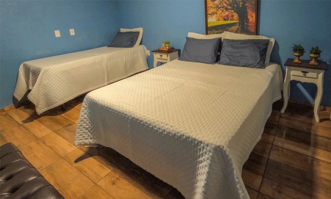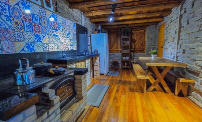 - CHALÉ CASA DE PEDRA: uma grande churrasqueira, uma área espaçosa ao lado de um deck com praça de fogo e piscina, um fogão a lenha com forno, um forno elétrico, um cooktop, uma cozinha totalmente equipada com utensílios, uma lareira para noites aconchegantes, dois banheiros, incluindo uma suíte no segundo piso, três quartos espaçosos (um deles é suíte), ar-condicionado (quente e frio) em todos os quartos + sala, geladeira, wi-fi, TV, lavadora de roupa, roupas de cama e toalhas.