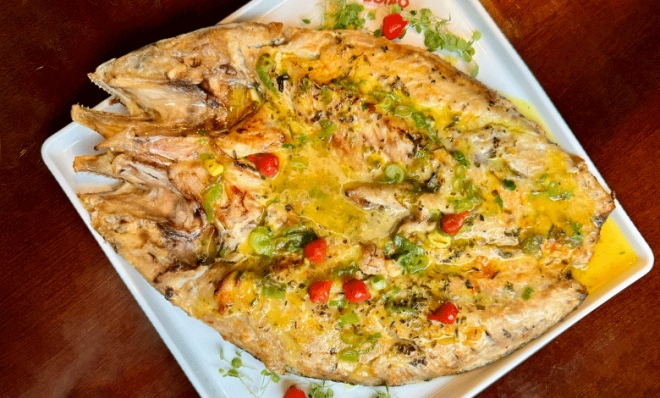 RESTAURANTE BOIÃO: peixe assado (tainha ou anchova) com acompanhamentos para 1 ou 2 pessoas