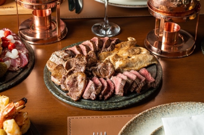 - Fondue de Carnes: cortes selecionados de filé mignon, frango, suíno e camarão, servidos com molhos, geleias e redução de vinho.