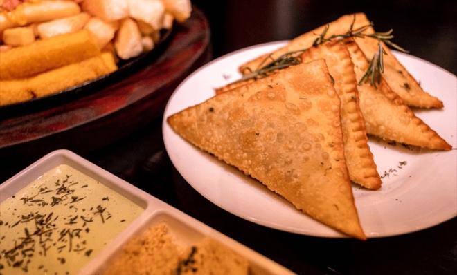 - TÁBUA: 150g de alcatra, 150g de frango, 150g de calabresa, batata com cheddar e bacon, polenta, aipim, brócolis, cenoura e 4 pastéis de carne seca.