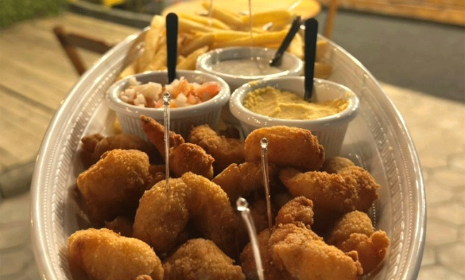 - O camarão é servido dourado e crocante por fora, suculento por dentro, preparado na hora e com aquele tempero especial que faz toda a diferença. A batata frita chega sequinha e irresistível, combinação perfeita para compartilhar ou saborear sem pressa.