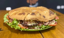 - X Top King (calota): pão 35cm, 5 carnes, 5 ovos, presunto, queijo, calabresa, bacon, queijo, alface, tomate, milho, ervilha, maionese da casa e vinagrete.