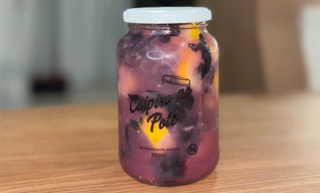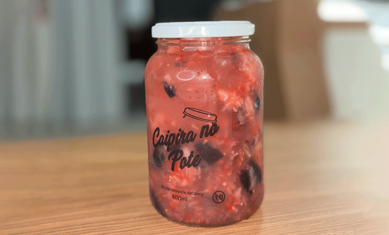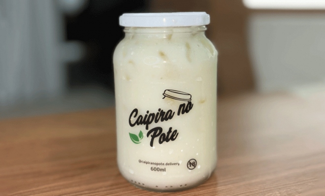 - Caipirinha no pote, geladinha e pronta pra curtir! Perfeita pra curtir a noite sem complicação! Todas as caipirinhas são feitas na hora com frutas frescas e servidas em um pote de 600ml.