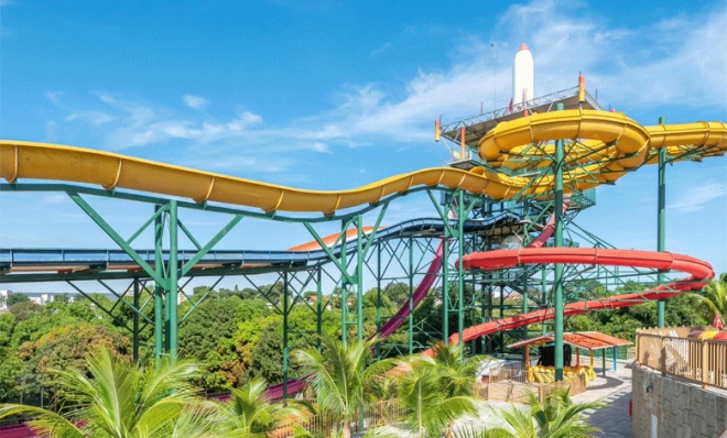 - Para quem busca emoção, o parque aquático diRoma conta com: